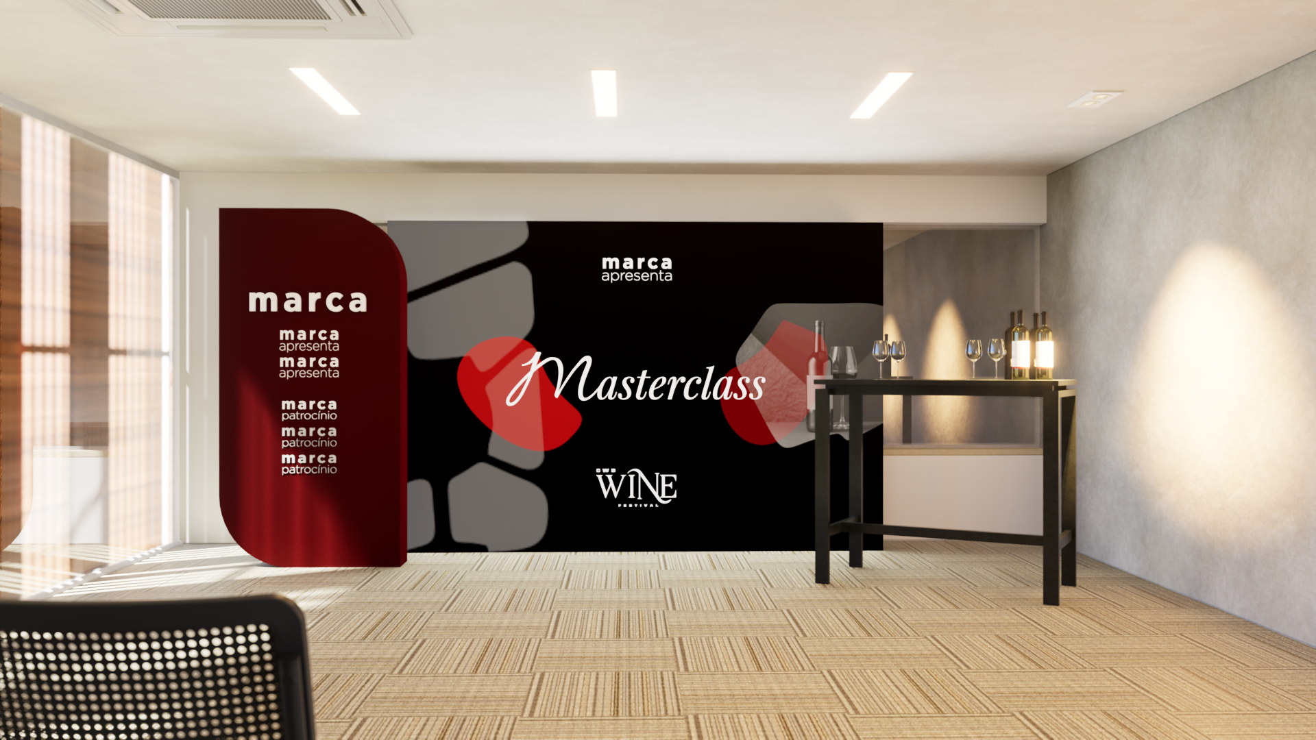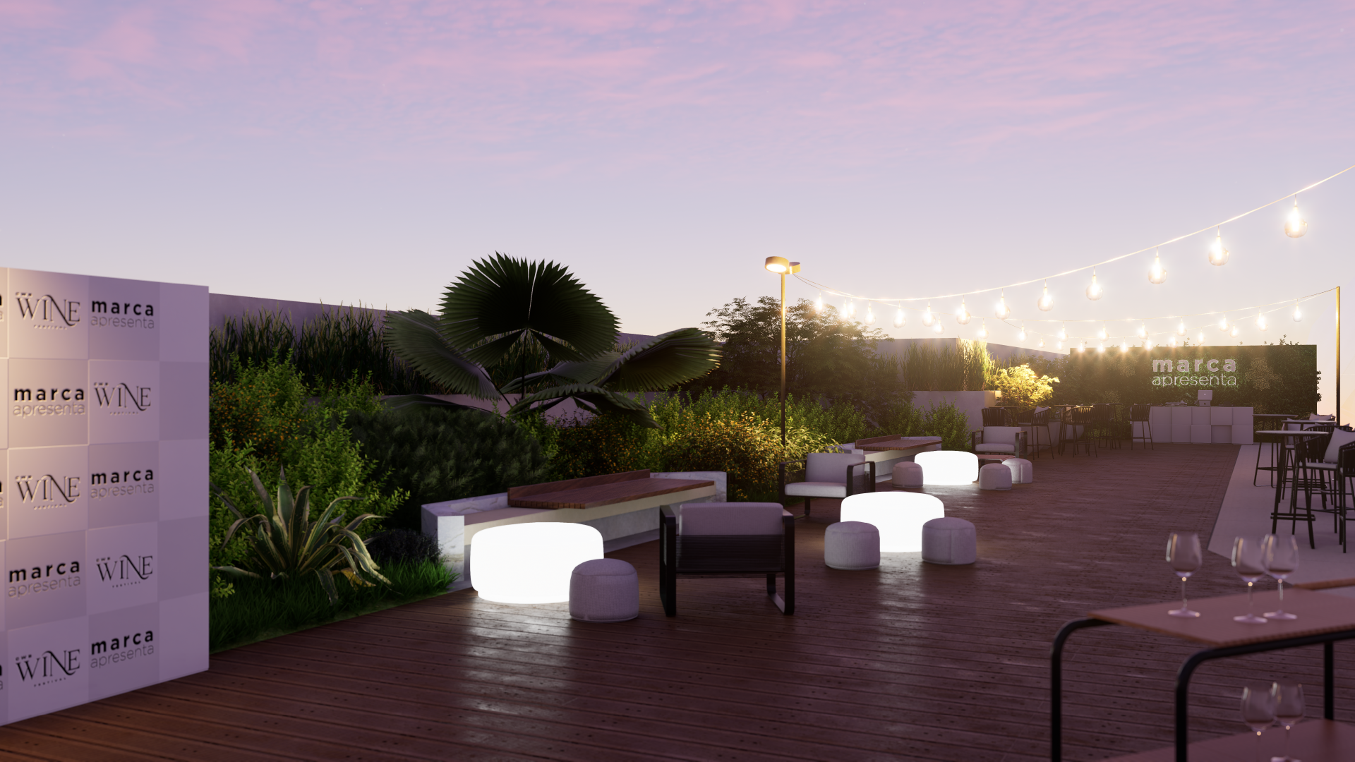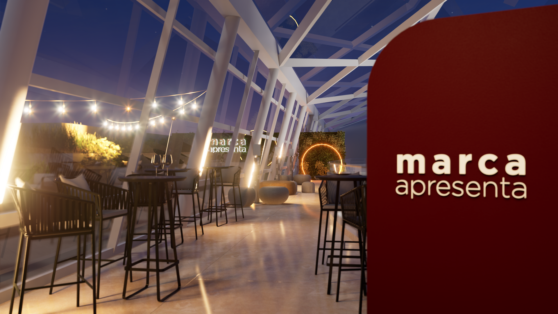 Projeção de cenografia de pórtico, espaço lounge interno e externo, masterclass. Entrega das imagens 3D (2025)